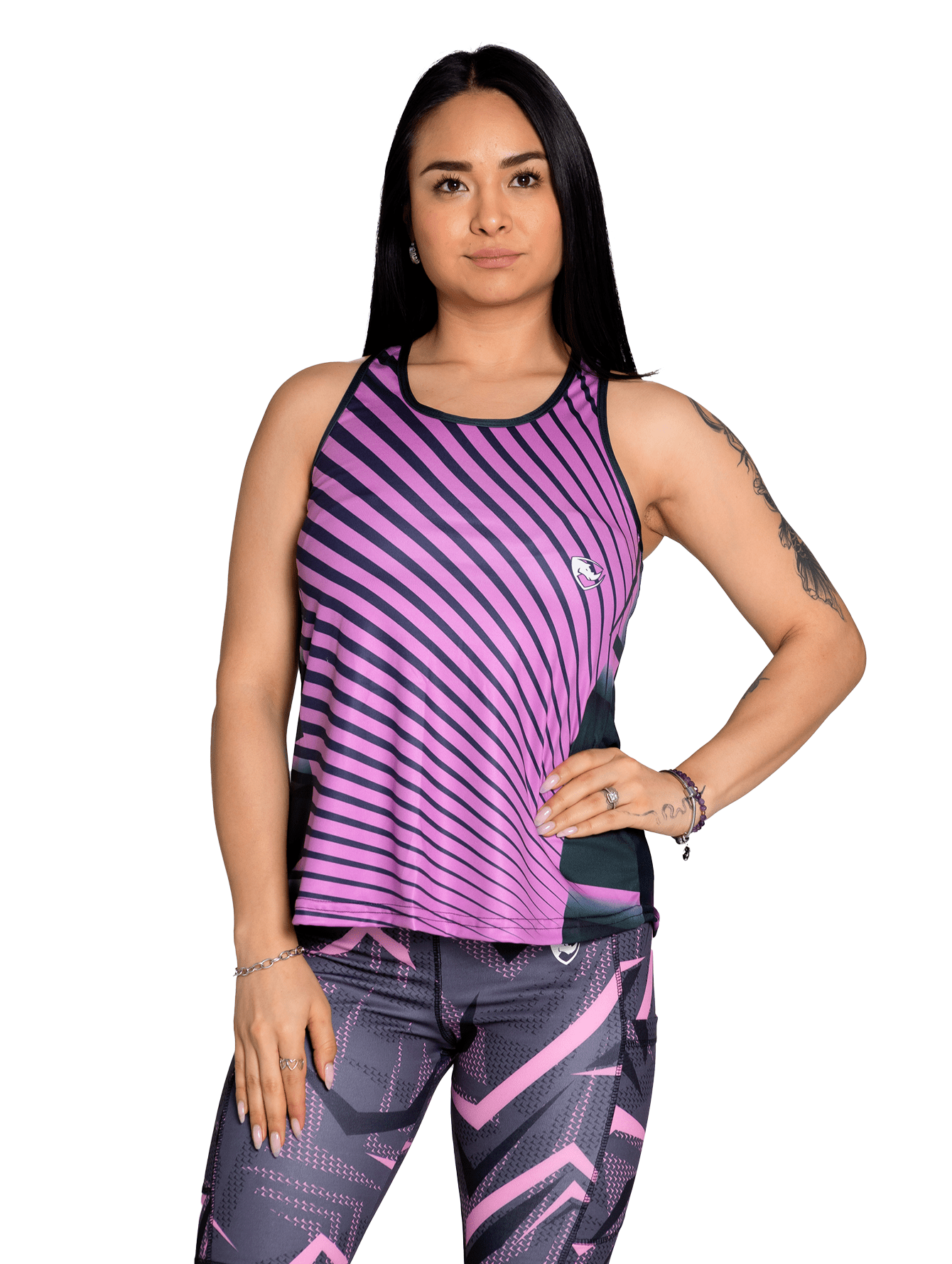 Su corte favorecedor y ajuste active wear lo hace adecuado para todo tipo de cuerpo, brindando un fit cómodo y estilizado que te permite moverte con total libertad. Ya sea para realizar ejercicios en el gimnasio, clases de yoga o entrenamiento al aire libre, este tank top es ideal para todas tus actividades físicas.